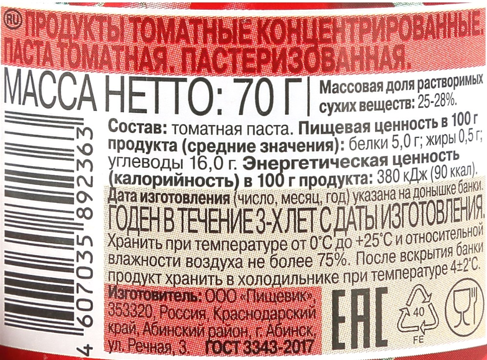 Томатная паста Помидорка, 70 г – лучший выбор для домашнего меню. В небольшой жестяной баночке сохраняют полезные вещества и натуральный вкус 6 спелых помидоров. Удобный ключ позволит открыть ее одним движением руки. Объем идеален для приготовления одного блюда. Продукт не содержит загустителей и красителей. Томатная паста используется в рецептах первых блюд и соусов, также ее добавляют в различные подливы и заправки. Благодаря уникальной технологии производства полностью сохраняются яркий цвет и богатый вкус с выраженной кислинкой.