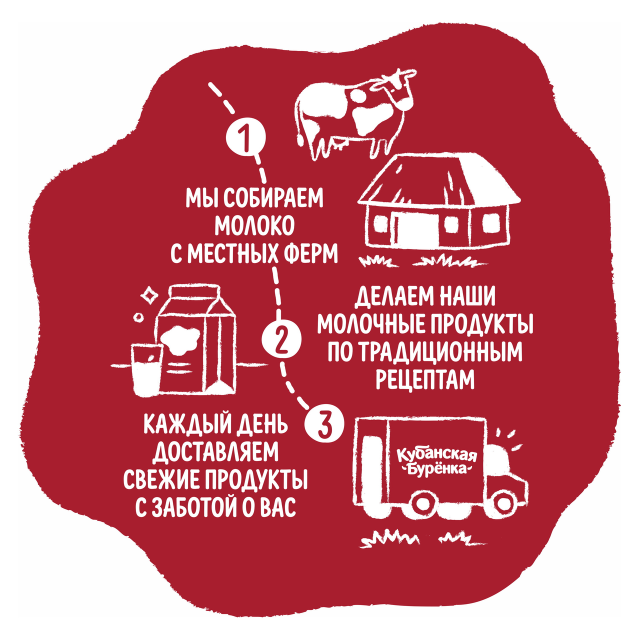 Молоко пастеризованное Кубанская буренка. Побалуйте себя свежим молоком Кубанская буренка с душистым хлебом! Кубанская буренка — это натуральные молочные продукты высочайшего качества из Кубани для здорового питания. Основа марки — традиционные молочные продукты: молоко, кефир, сметана, творог, ряженка, сливки, и сливочное масло. Для производства продукции Кубанская Буренка молоко закупается более чем в 50 лучших хозяйствах Краснодарского края, где коровы пасутся на залитых ярким солнцем плодородных землях, а ухаживают за ними с большой любовью и заботой.