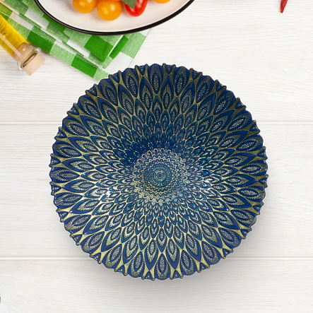 Салатник Па��лин, 33,5 см — это красивый и стильный салатник из стекла, который привнесет изысканность и элегантность в любой стол. Его диаметр составляет 33,5 см, что позволяет разместить в нем большое количество различных ингредиентов для салата. Дизайн салатника украшен изображением павлина, выполненным в ярких и насыщенных цветах. Благодаря высокому качеству материала и прочности стекла, салатник легко моется и сохраняет свой первоначальный вид долгое время. Изделие можно использовать в посудомоечной машине, а также очищать ручным способом с помощью влажной губки, моющего средства и проточной воды.