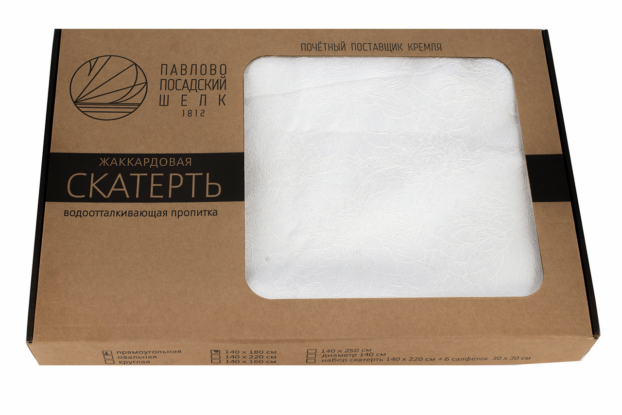 Скатерть белая с водоотталкивающей пропиткой Павло-Посадский шелк, 140x180см