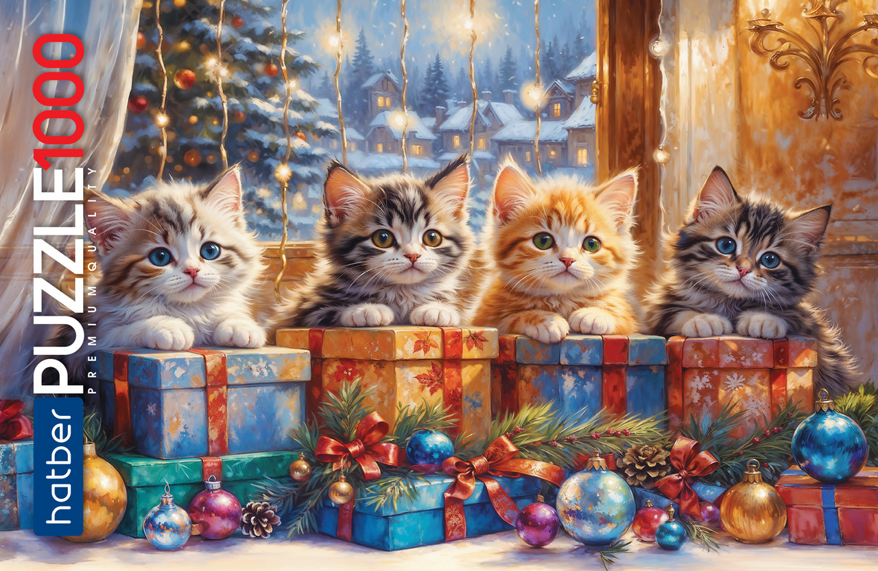 Premium Пазлы 1000 элементов А2ф 680х480мм -Котята с подарками-. Яркий красочный дизайн найдет своих почитателей среди настоящих любителей собирать мозаику.