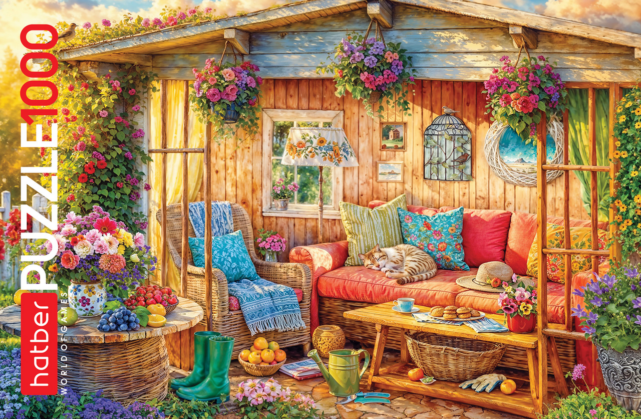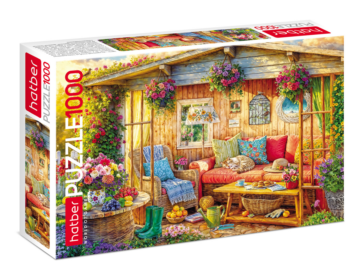Пазлы 1000 элементов А2ф 680х480мм. Уютная веранда. Пазл премиум-класса состоит из 1000 элементов, дополнительно упакованных в прозрачный пакетик. Яркий красочный дизайн найдет своих почитателей среди настоящих любителей собирать мозаику. Для производства пазлов использован специально разработанный европейский картон для пазлов, толщина которого увеличена. Упаковка: стильная подарочная коробка в термоусадочную пленку. Конструкция полностью изготовлена из жесткого картона.