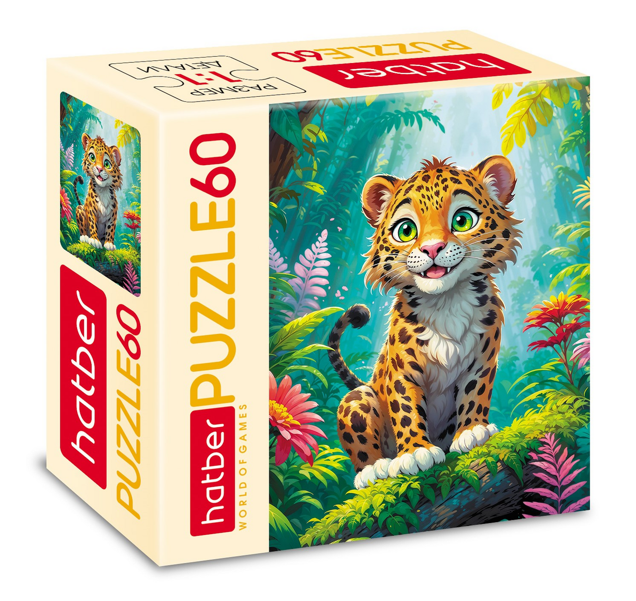 Пазлы для детей 60 элементов А5ф 165х230мм. Леопардик. Пазл состоит из 60 элементов, дополнительно упакованных в прозрачный пакетик. Яркий красочный дизайн найдет своих почитателей среди детей дошкольного и младшего школьного возраста. Упаковка: картонная коробка с клапаном в термоусадочную пленку.