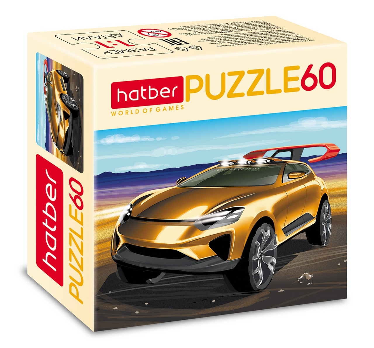 Пазлы для детей 60 элементов А5ф 230Х165мм. Cross car. Для детей, которые готовы к более сложной сборке, кто перешёл на следующую ступень мастерства. Яркие дизайны этой серии непременно найдут своих почитателей: Новинки в удобных коробочках с клапаном, в которые легко и быстро убирать элементы, а компактность упаковки не займет много места среди игрушек. Постепенно увеличивая количество элементов, вы выходите на новый уровень и повышаете свое мастерство.