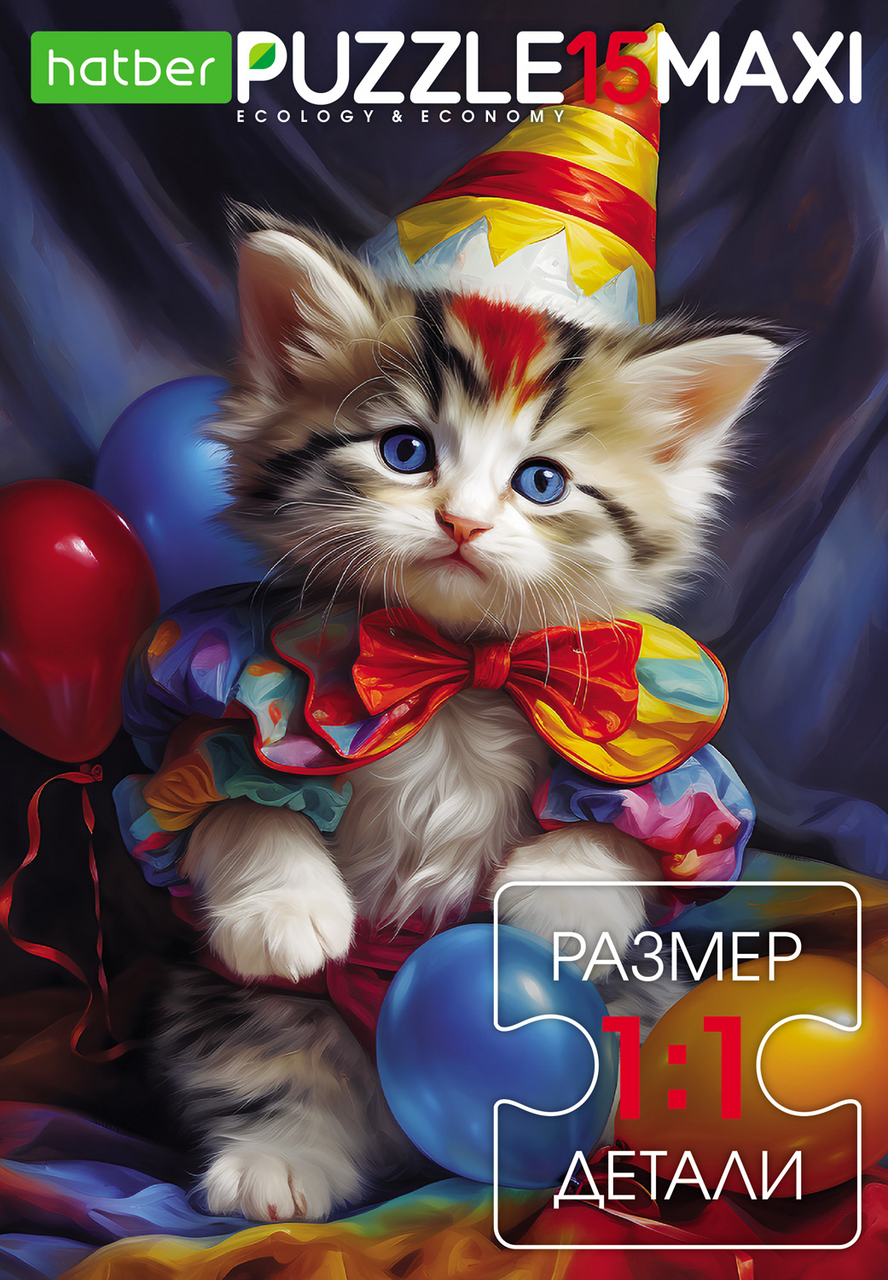 Пазлы для детей Hatber Котик-клоун 15 элементов А4ф, 220 x 330мм