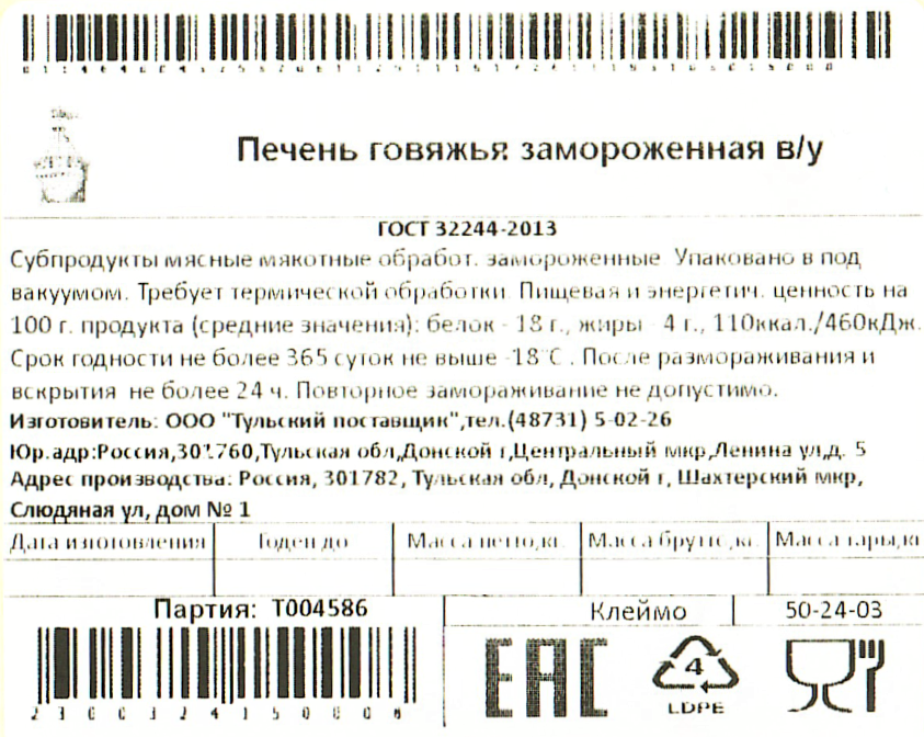 Печень говяжья.