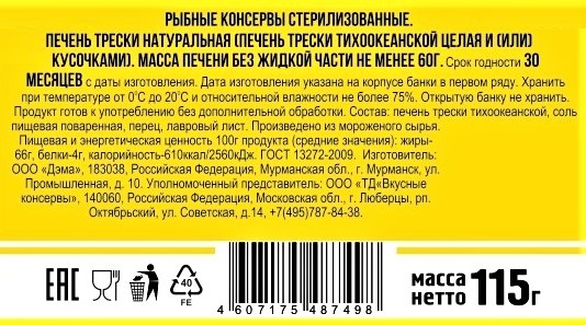 Печень трески Вкусные Консервы - уникальный продукт, который сочетает изысканный вкус и богатейший набор питательных веществ, делая его идеальным выбором для ценителей качественной еды и осознанного питания. Это один из самых богатых источников витамина D и омега‑3 жирных кислот.