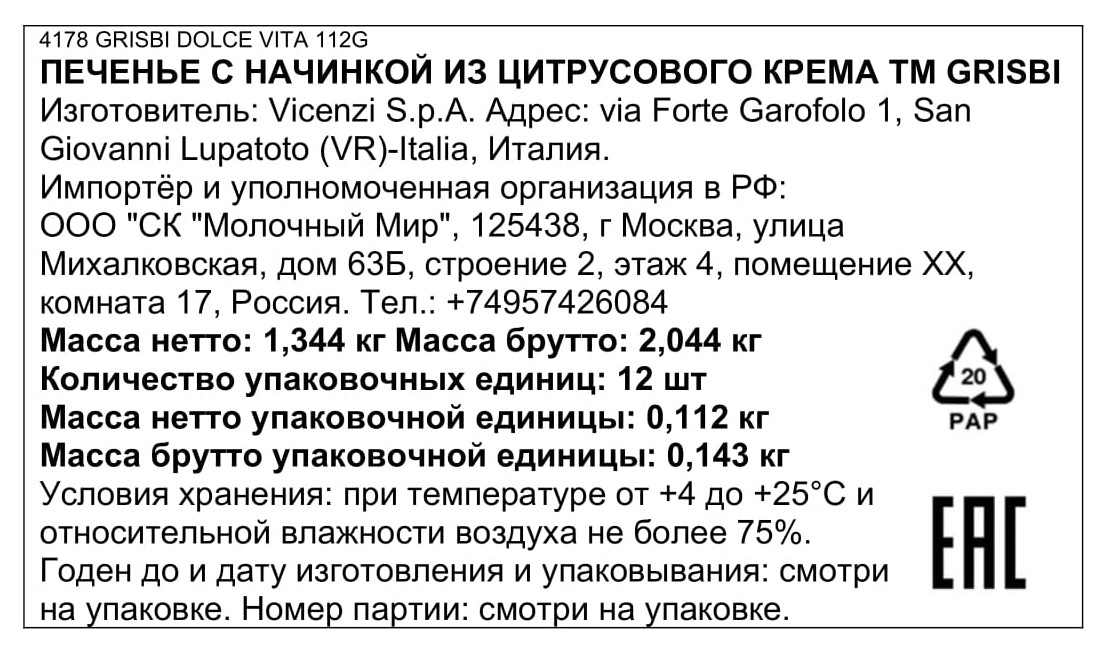 Мука пшеничная, растительные масла пальмовое, соевое, подсолнечное, сахар, глюкозный сироп, цитрусовый порошок апельсин, лимон, танжерин, молоко сухое цельное, яйцо куриное, крахмал пшеничный, крахмал кукурузный, сухой яичный белок, ароматизаторы, модифицированный картофельный крахмал, концентрат: моркови, тыквы, паприки, редьки; эмульгатор: соевый лецитин, разрыхлители гидрокарбонат натрия, гидрокарбонат аммония, регулятор кислотности: лимонная кислота.
