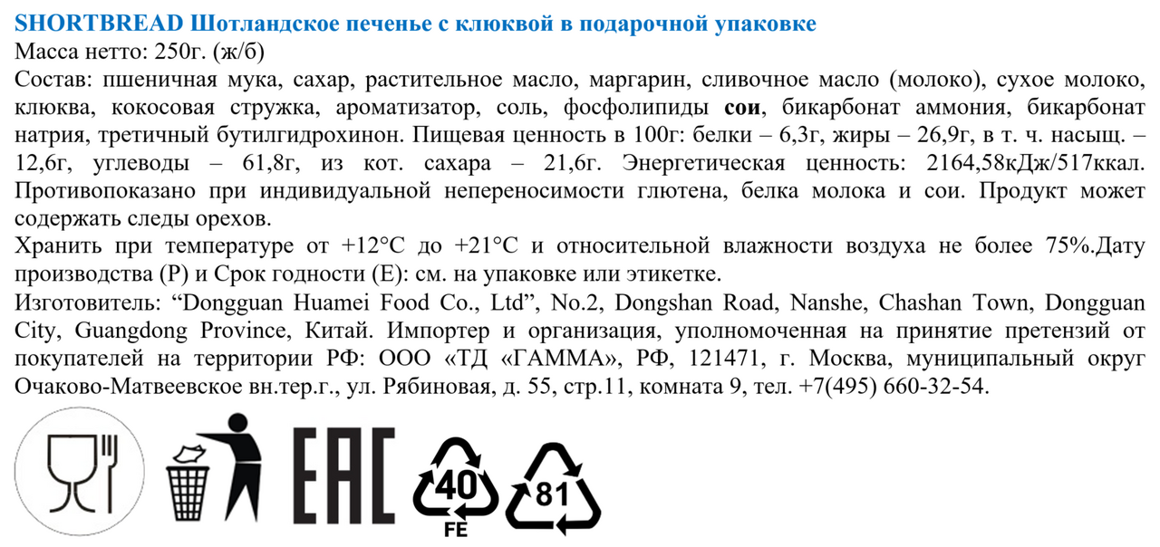 Классический вкус шотландского печенья с ягодной клюквой и кокосовой стружкой - идеальное сочетание сладости и легкой кислинки. Изготовлено из натуральных ингредиентов.Удобная жестяная коробка сохраняет свежесть и стильно дополняет любой подарочный набор. Долгий срок хранения позволяет наслаждаться вкусом в любое время года.Отличный выбор для чаепитий, праздников или просто как лакомство для всей семьи.
