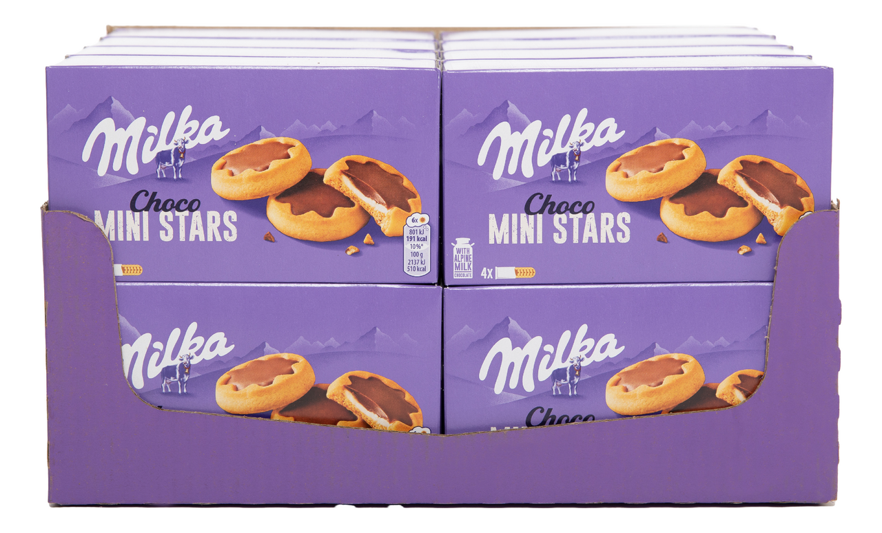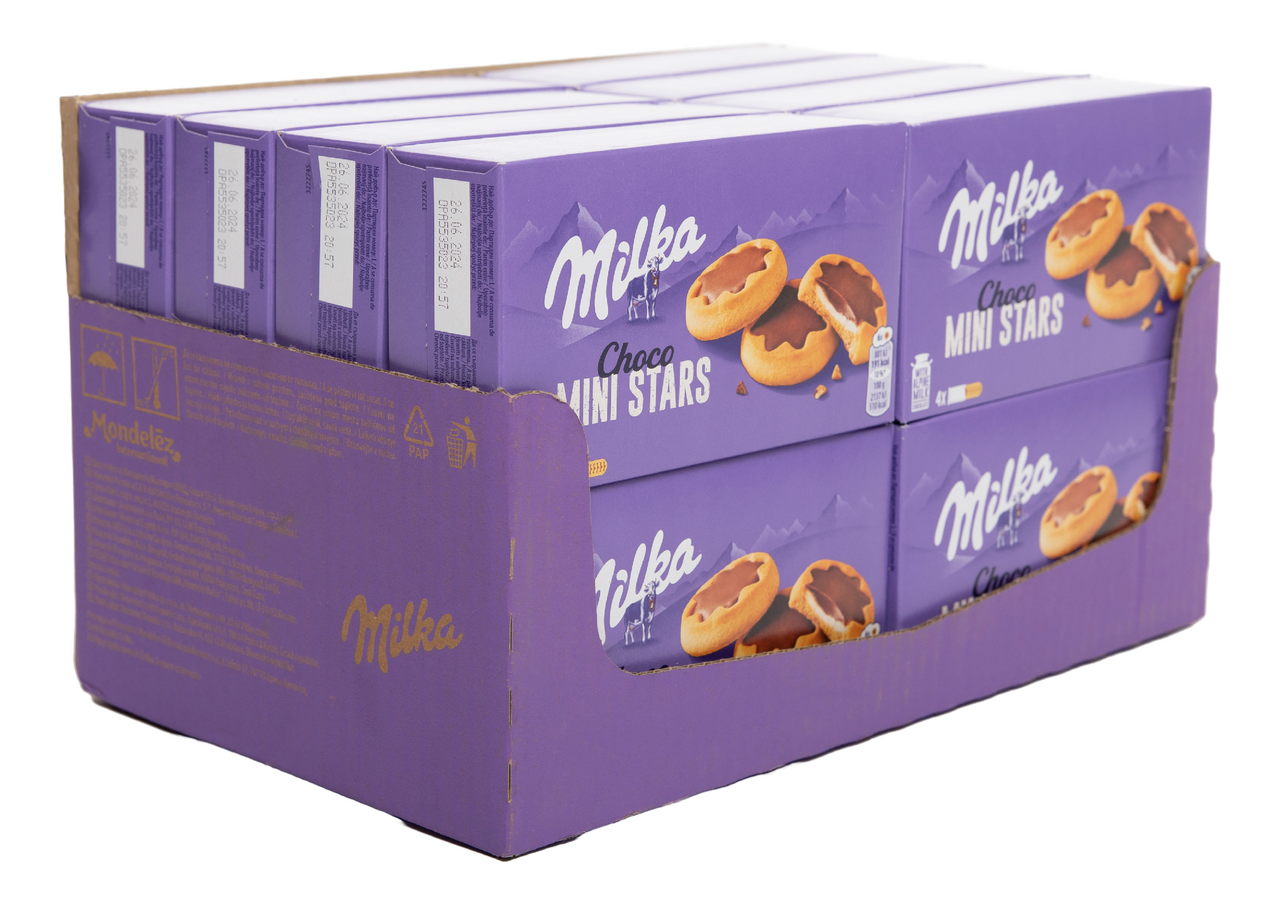Milka (Милка) Choko Minis - это маленькие чудо-звездочки из бисквитного хрустящего печенья с нежной сливочной начинкой, залитые вкуснейшим альпийским молочным шоколадом.Создано с любовью и заботой, чтобы предложить вам незабываемый вкусовой опыт. Хрустящее печенье обрамлено нежным молочным шоколадом, который медленно тает во рту, раскрывая богатый и насыщенный вкус.