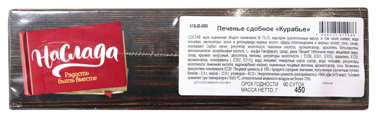 Вернуться назад Печенье Наслада сдобное курабье, 450г Оставить отзыв Артикул: 669877 Поделиться В избранное Раскупили Сообщить о поступлении Посмотреть похожие Узнать наличие в магазинах Бренд НАСЛАДА Страна-производитель Россия Подробнее Описание Песочное печенье с ванильным ароматом, украшенное джемом. Печенье с масляным вкусом, которое хорошо сочетается с чаем или кофе. В нём есть хрустящая текстура и приятный аромат. Полное описание Характеристики Бренд НАСЛАДА Страна-производитель Россия Раскупили Сообщить о поступлении Посмотреть похожие Узнать наличие в магазинах