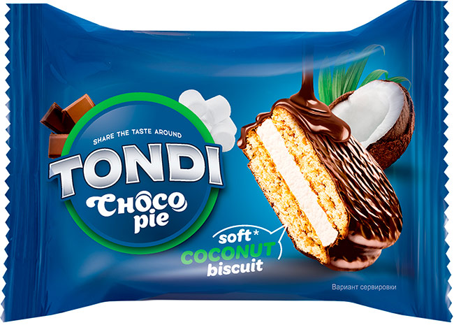 Великолепное трио из ароматного кокосового печенья, нежного маршмеллоу и глазури. Choco Pie дословно переводится как шоколадный пирожок, а на самом деле, – давно любимое многими пирожное, которое особенно гармонично сочетается с какао, кофе с молоком или любимым чаем. А когда захочется разнообразия, подогрейте Choco Pie 5-7 секунд в микроволновке. Начинка из маршмеллоу увеличится и станет еще более воздушной, пирожное – более пышным, а вкус натурального кокоса – раскроется и станет более соблазнительным. Теплое и будто свежеиспеченное лакомство, которое лучше есть ложкой, будет таять во рту.