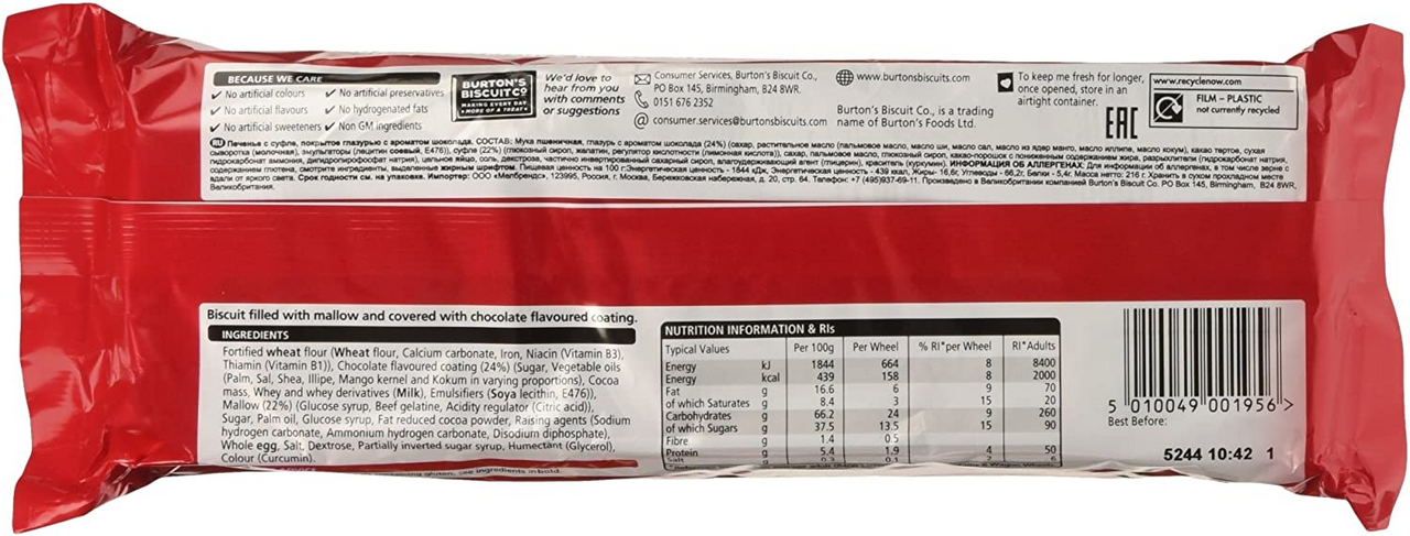 Бисквитное печенье Wagon Wheels Original, 220 г непременно понравится и вам, и вашим детям. Этот ароматный и удивительно вкусный продукт создаст ощущение уюта во время домашнего чаепития, придется кстати для офисного перерыва с коллегами. Его также удобно взять с собой в дорогу или на прогулку. Бисквитное печенье, покрытое нежным молочным шоколадом, скрывает внутри невероятное сочетание вкусов нежного воздушного суфле со сладким фруктовым джемом.