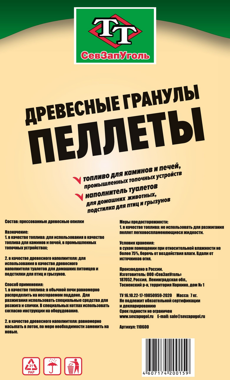 Пеллеты Севзапуголь древесные топливные, 7кг