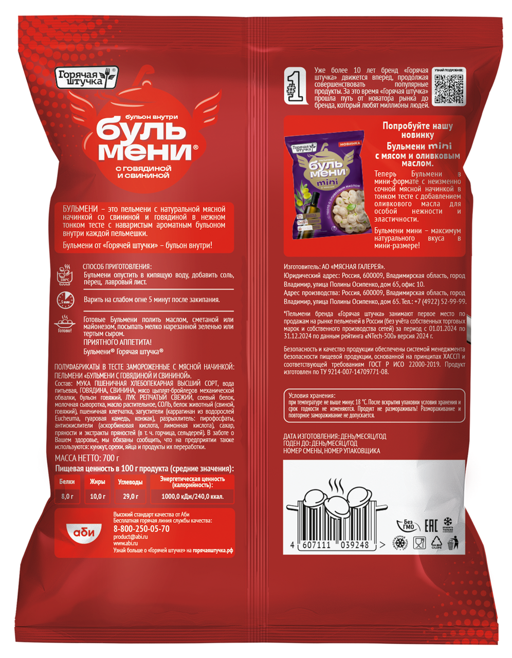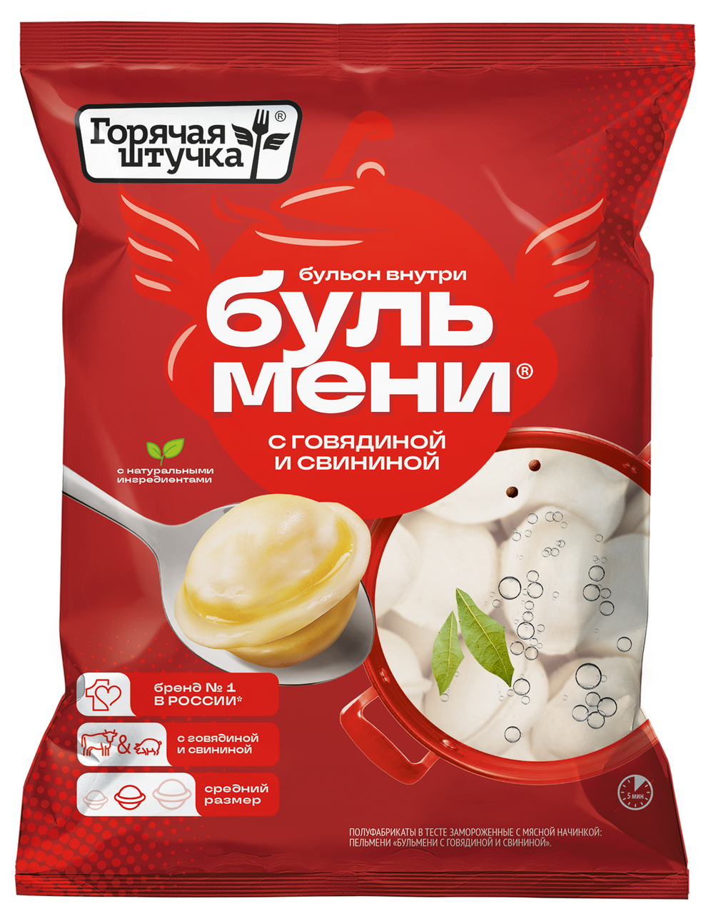 Пельмени Горячая штучка Бульмени с говядиной и свининой замороженные, 700г