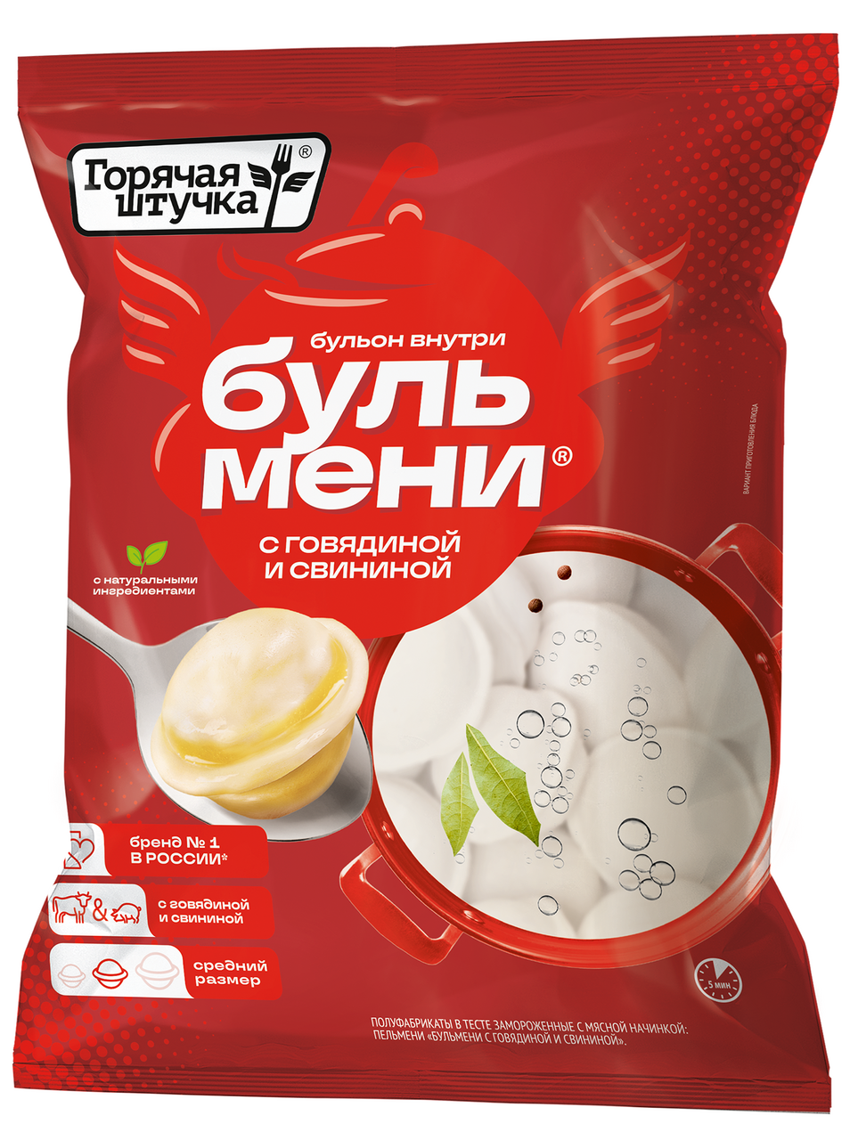 Бульмени с говядиной и свининой сочетают в себе насыщенный вкус, сочный фарш, тонкое тесто и мясной бульон внутри каждой пельмешки. Это то, что делает Бульмени такими неповторимыми.Сочные пельмени с бульоном внутри - это полноценное блюдо, которое вы можете подать на обед или на ужин. Они быстро готовятся и прекрасно утоляют голод. По желанию к ним можно добавить сметану, майонез, кетчуп, тертый сыр или мелко нарезанную зелень.