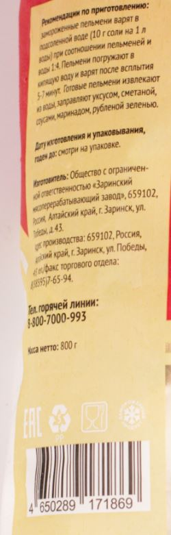 Пельмени изготовлены по традиционному рецепту. Нежное тонкое тесто, сочная начинка из отборного мяса с добавлением репчатого лука и натуральных сливок. Быстро готовятся, не развариваясь и сохраняя первоначальную форму. Продукт из нежного теста наполнен сочной начинкой из мясного фарша, репчатого лука и ароматных специй. Подчеркнуть насыщенный вкус пельменей поможет сметана, майонез, горчичный или другой соус.