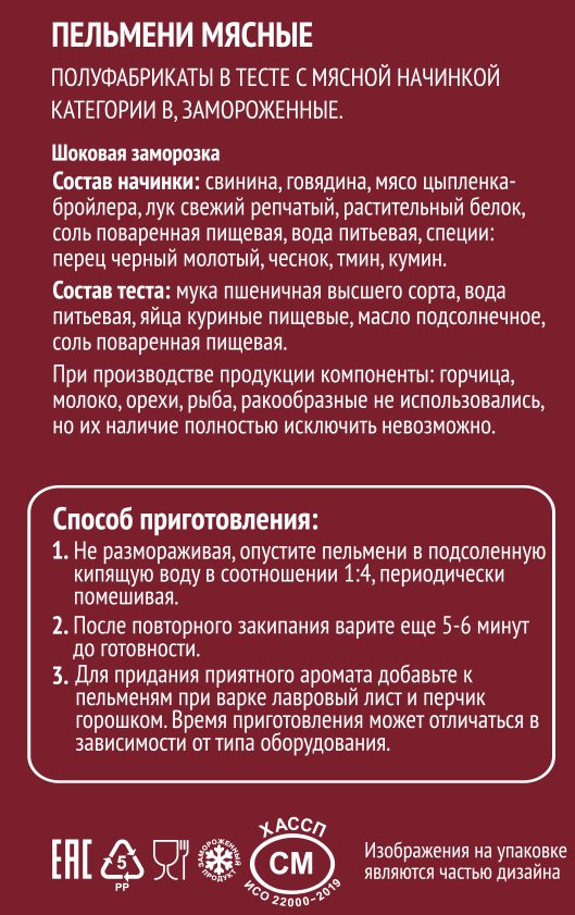 Пельм��ни с нежным мясом и ароматными специями, насладитесь истинным вкусом домашней еды. Быстро готовятся, не развариваясь и сохраняя первоначальную форму. Продукт из нежного теста наполнен сочной начинкой из мясного фарша, репчатого лука и ароматных специй. Подчеркнуть насыщенный вкус пельменей поможет сметана, майонез, горчичный или другой соус.