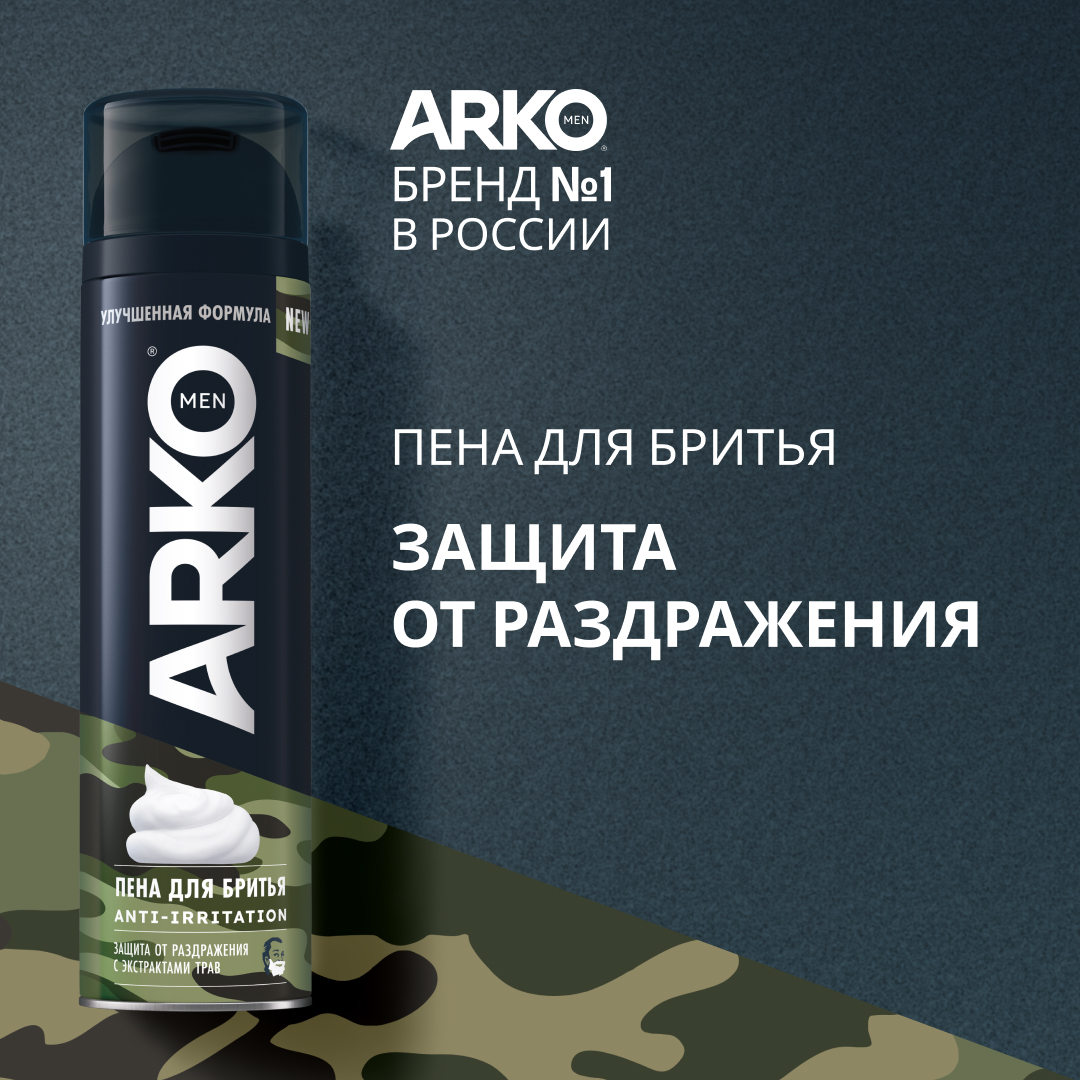 Пена для бритьяArkoMenAnti-Irritationпомогает уменьшить риск раздражения и жжения кожи за счет интенсивного смягчения щетины и увлажнения кожи. Формула, разработанная специально для мужчин с чувствительной кожей, содержит алое вера и экстракт ромашки. Дерматологически протестировано.
