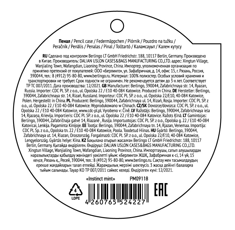 Пенал Berlingo Instinct Mint мягкий, 210 x 60 x 50мм