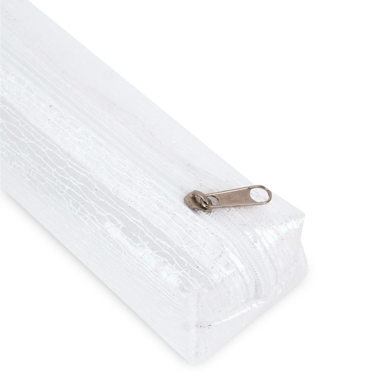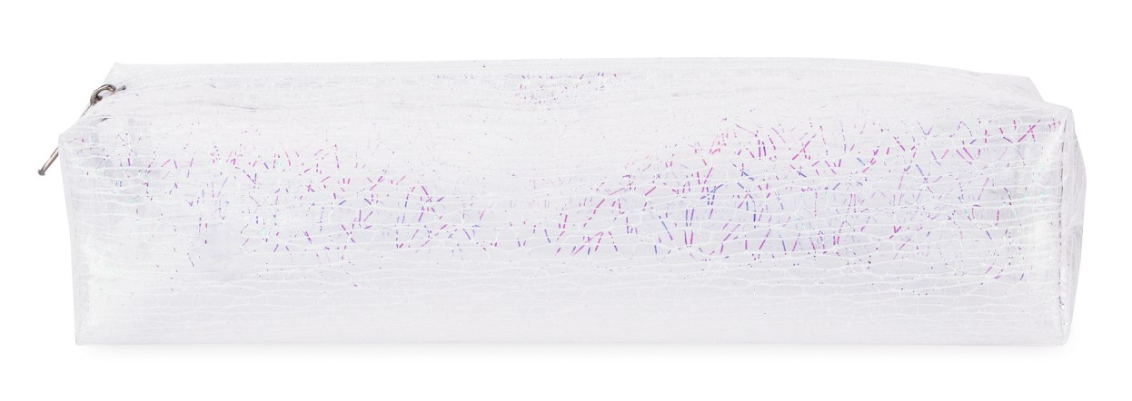CPC11062TE_1 Пенал прозрачный с блестящим узором. Colorio. Изделие имеет одно отделение, которое закрывается на молнию, надежный замок защитит ваши канцтовары от выпадения и потери. Дизайн пенала выполнен в модных тонах, что делает его подходящим для любого образа и стиля. Лаконичный пенал со стильным принтом станет отличным приобретением для детского сада, 1 класса, начальной или средней школы.