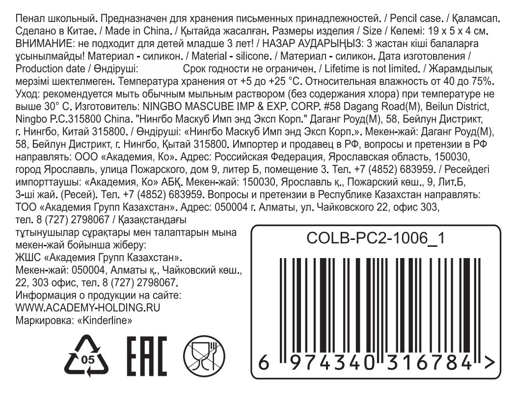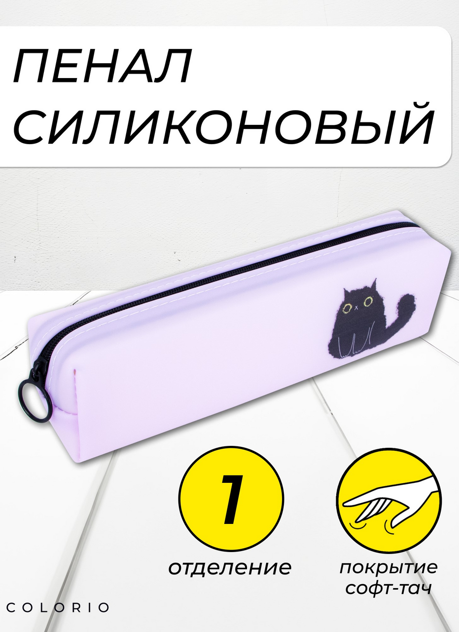 CPC21006_1 Пенал силиконовый с одним отделением на молнии. Кот. Сиреневый. Colorio. Пенал силиконовый очень приятный на ощупь - эффект софт тач. Предназначен для хранения и транспортировки канцелярских принадлежностей. Пенал удобной прямоугольной формы вмещает в себя все самое необходимое для учебы и не занимает много места в рюкзаке. Такой пенал станет надежным помощником в учебе и творчестве. Одно отделение на молнии.