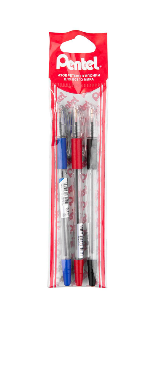 Pentel Набор ручек шариковых: синяя, черная, красная 3шт + при покупке любых 3-х товаров ТМ Pentel ручка шариковая в подарок!