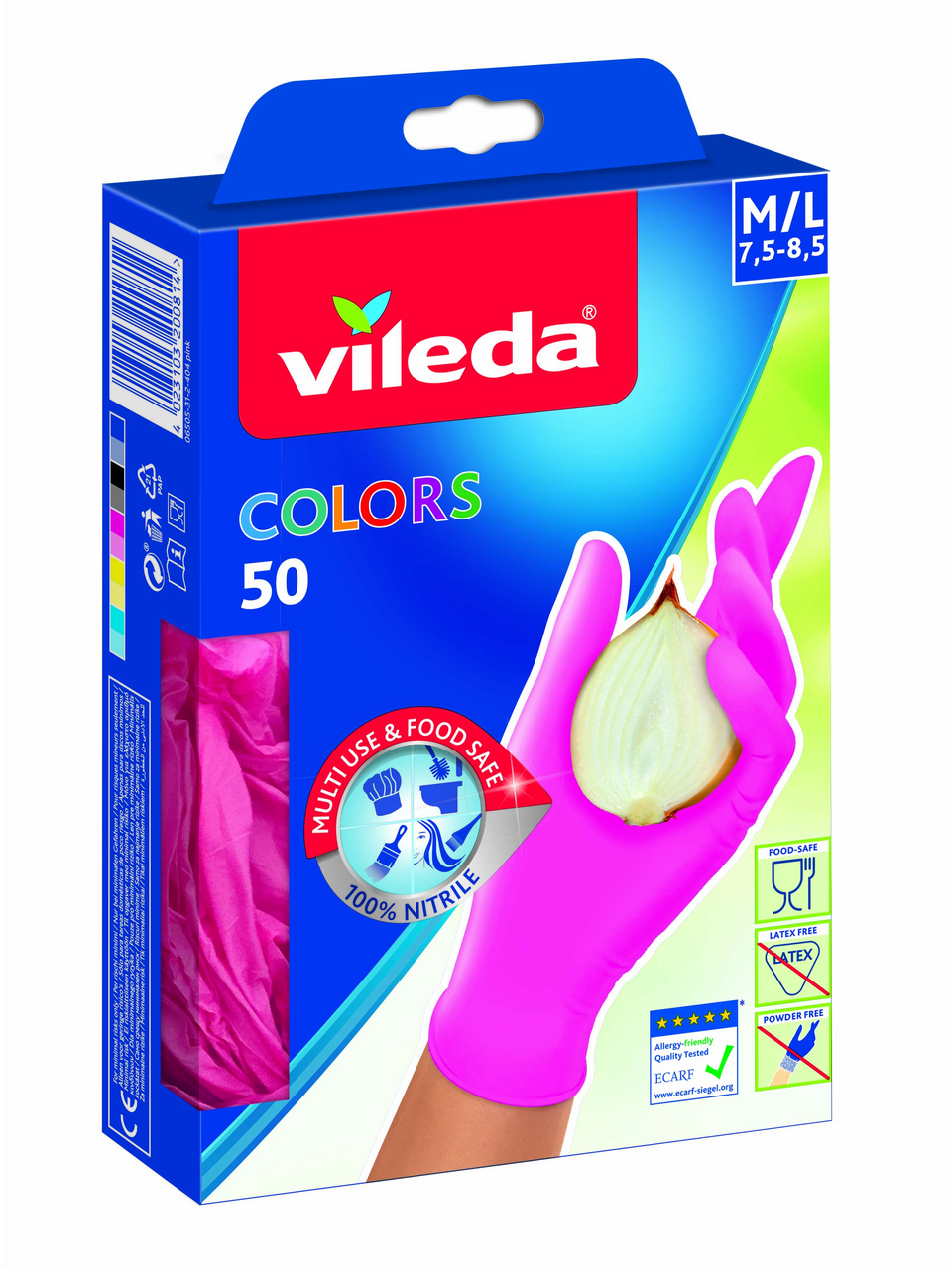 Перчатки Vileda Colors одноразовые нитриловые 22.5 x 12 x 4.2см, 50шт