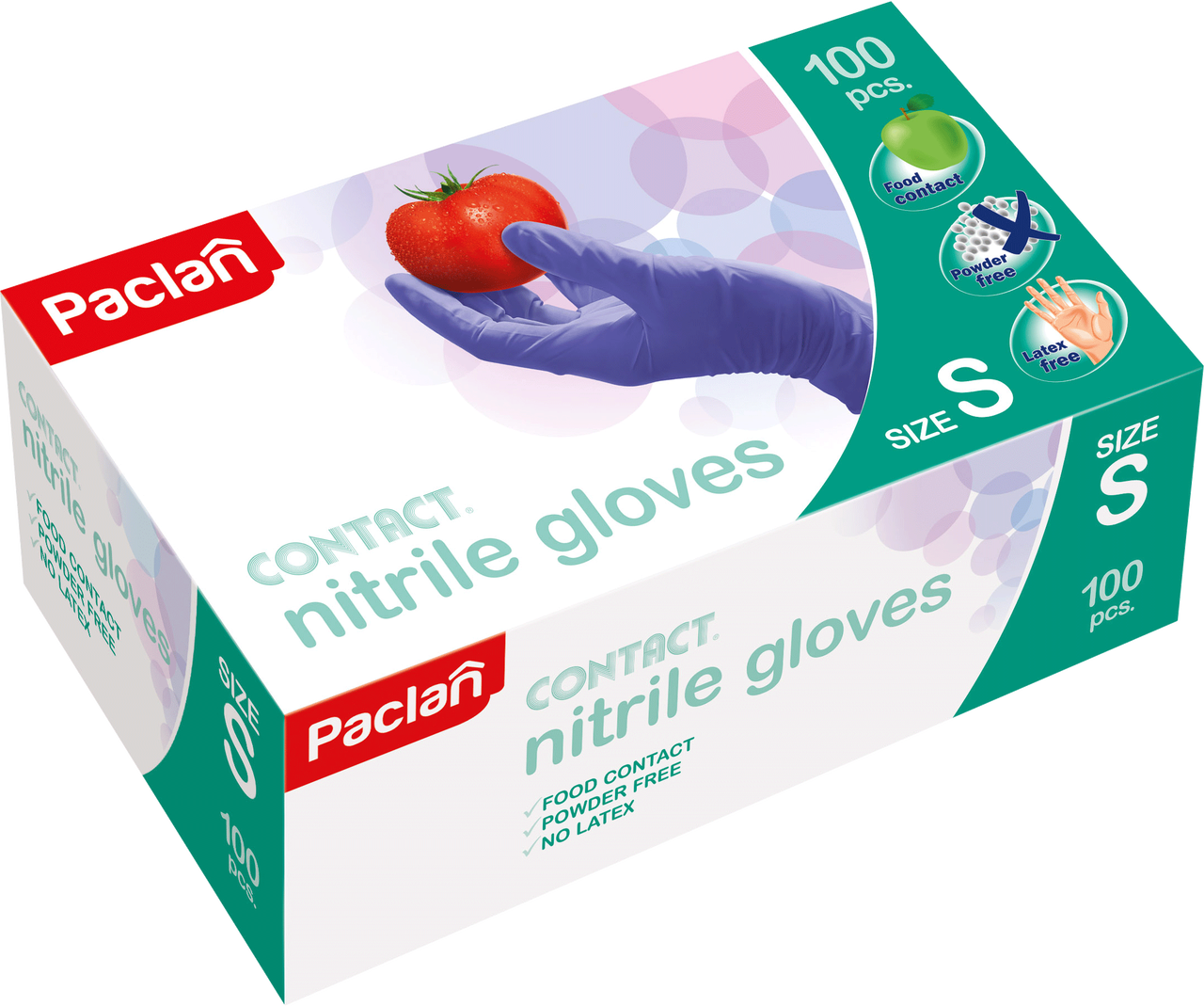 Paclan Перчатки хозяйственные нитриловые р-р S 50 пар / 100шт.