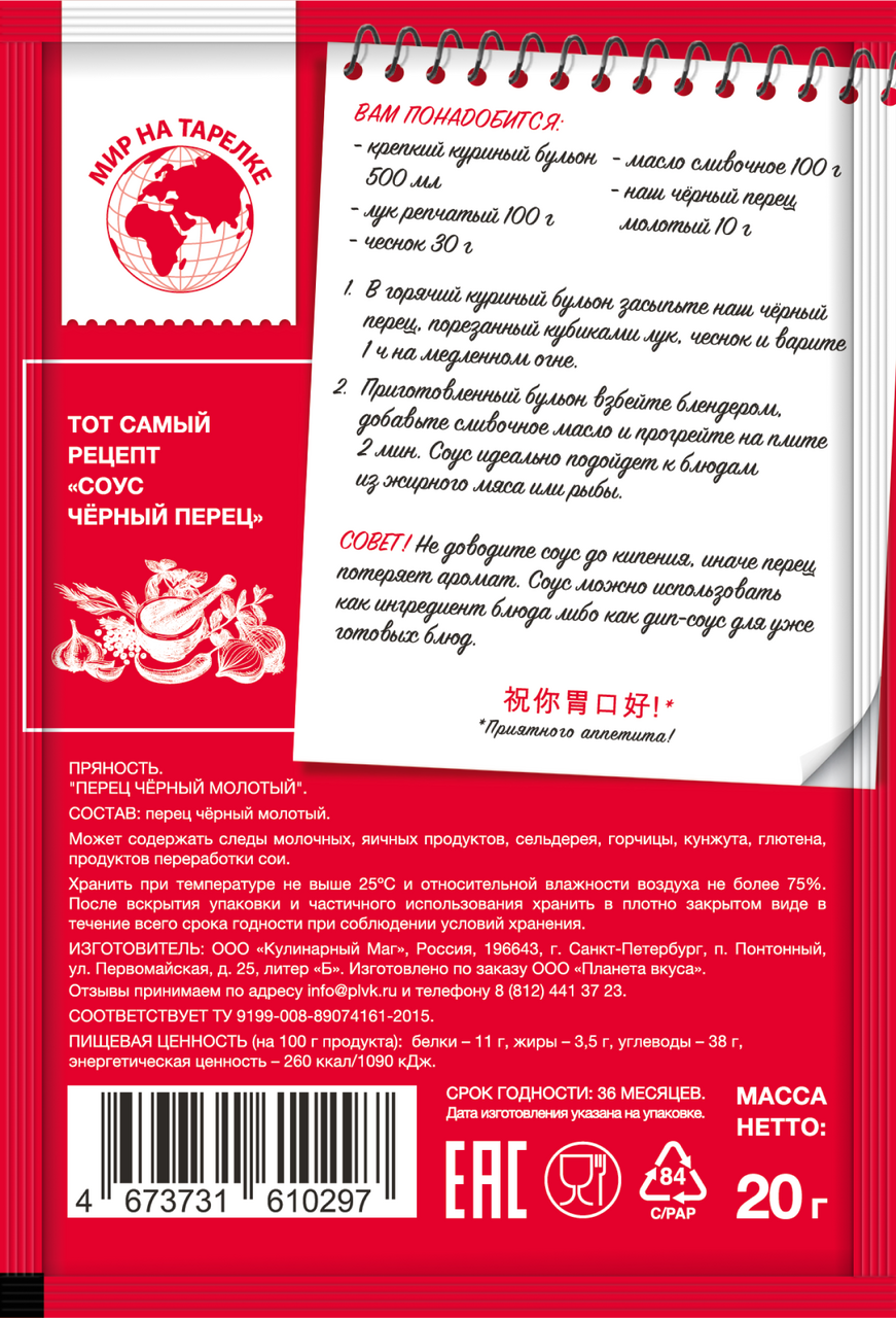 Перец черный Мир на тарелке молотый, 20г