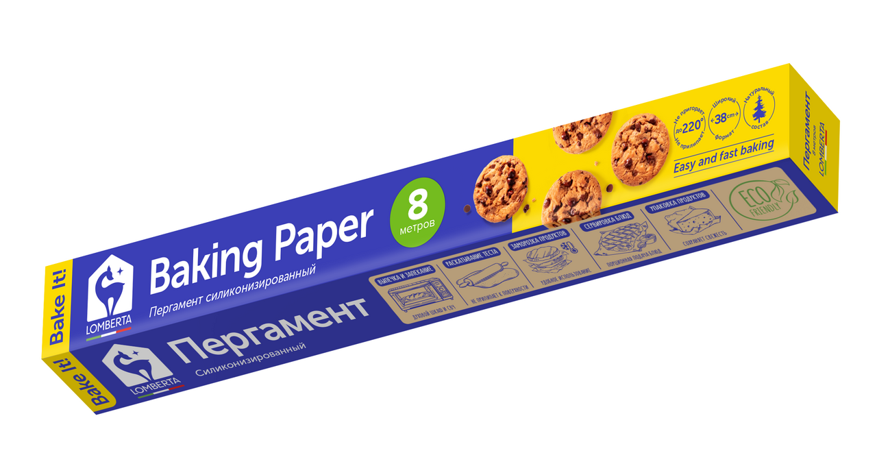 Предназначена для выпечки в духовках электрических и газовых плит, СВЧ-печей. Пергамент для выпечки имеет качественное двустороннее силиконовое покрытие и не нуждается в смазке, исключает прилипание и пригорание пищи. Бумага для выпечки Lomberta выдерживает высокие температуры до 220С, не пропускает жир и воду.