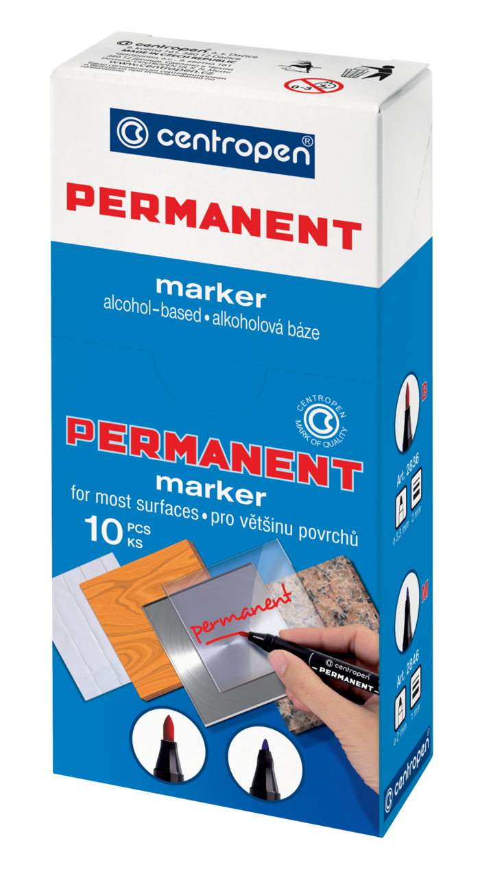 Маркер перманентный CENTROPEN черный, 10 шт. комфортен в использовании. Пишущий инструмент подходит для нанесения надписей на различные поверхности. Перманентный маркер с пластиковым корпусом удобно лежит в руке. Пишущий узел не требует сильного давления на поверхность. Наконечник перманентного маркера обеспечивает ровные, непрерывные и четкие линии. Чернила не разъедают поверхность, на которую наносятся. Они отличаются стойкостью к воздействию влаги, а также способностью сохранять цвет под влиянием ультрафиолета.