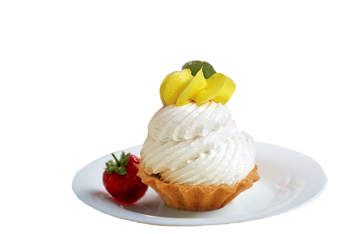 Песочная корзиночка заполнена ароматным абрикосовым повидлом и белковым кремом, украшена облаком из белкового сливочного крема, цукатами и сахарной пудрой.