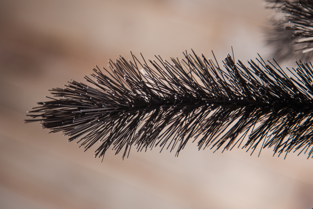 Пышная готичная красавица из лески черного цвета. Прекрасно смотрится как с классическими шарами, так и с дизайнерскими игрушка. И выглядит просто роскошно! Сборка елки не отнимет много времени. Необходимо лишь вставить веточки в специальные кассеты на стволе согласно цветовой маркировке.