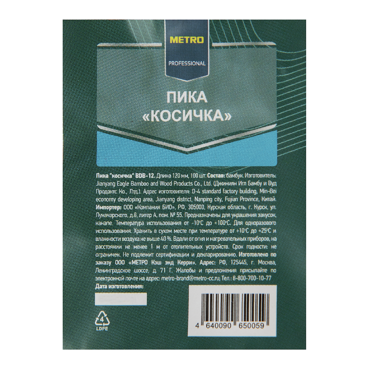 METRO PROFESSIONAL Пика Косичка бамбуковая 12см, 100шт