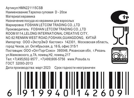 - Тип Тарелка обеденная