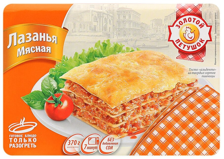Золотой петушок раскрывает для Вас секреты вкуса и национальное своеобразие кухонь мира, воплощая калейдоскоп кулинарных традиций в оригинальных блюдах. Оцените по достоинству вкус настоящей лазаньи.Блюдо кулинарное. Просто разогреть! Без сои.Особая система заморозки IQF - обеспечивает наилучшее качество продукта,сохраняя все его натуральные вещества, текстуру и форму. Тесто "альденте" из твердых сортов пшеницы.