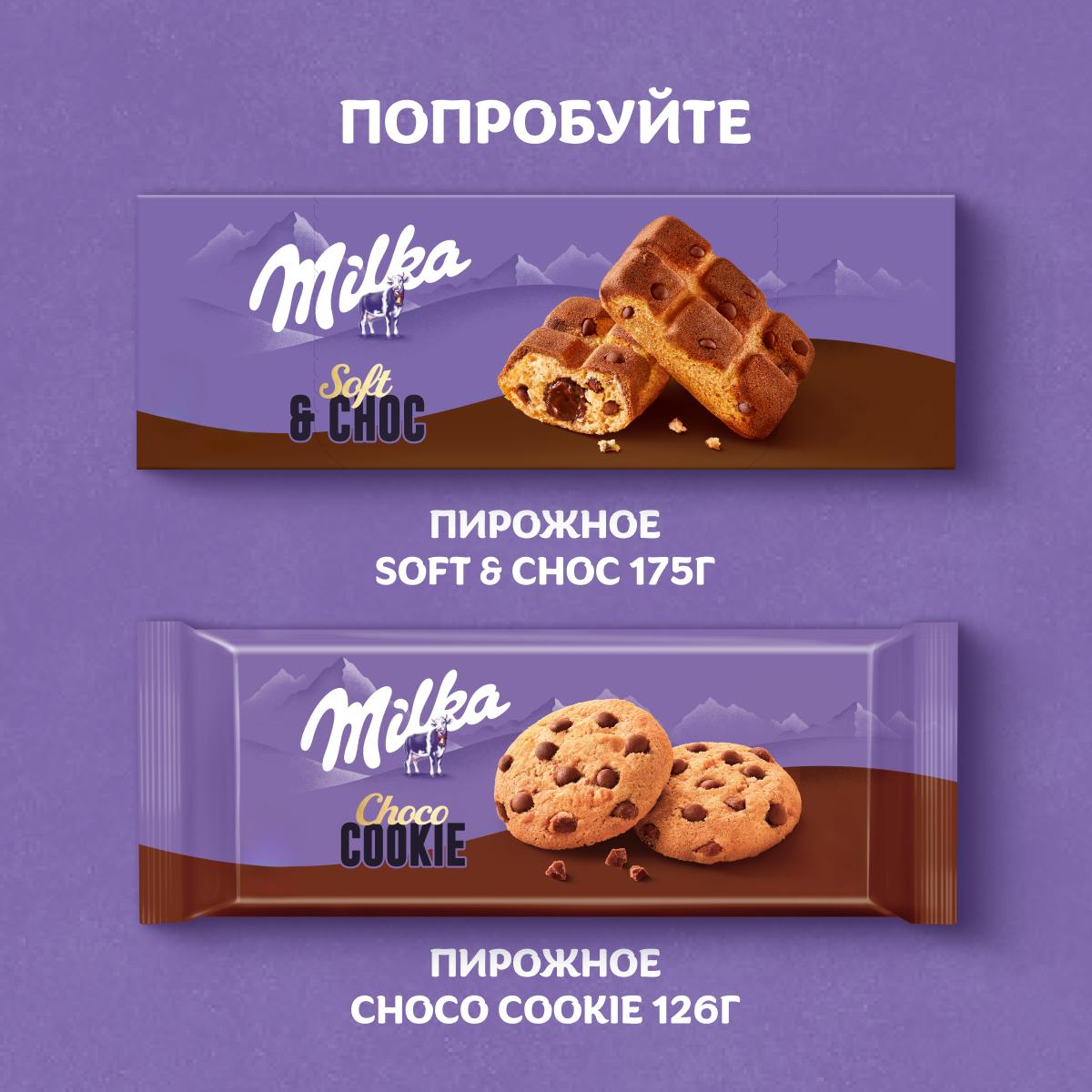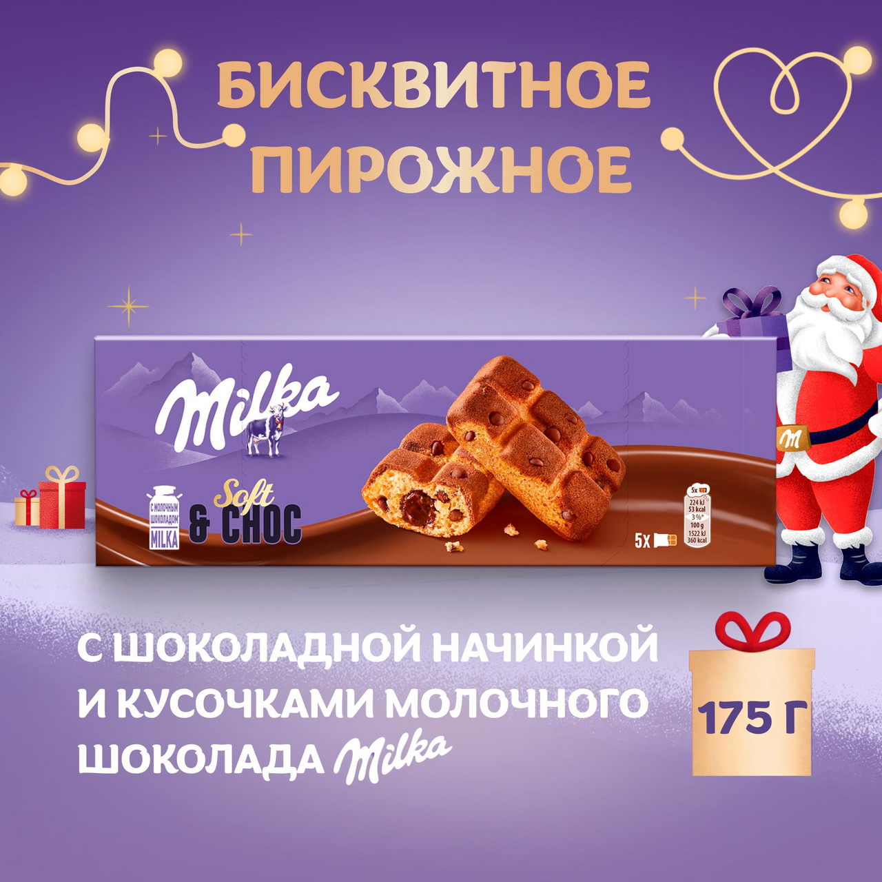Пирожное бисквитное Milka Biscuits Милка с шоколадной начинкой и кусочками молочного шоколада, 175г
