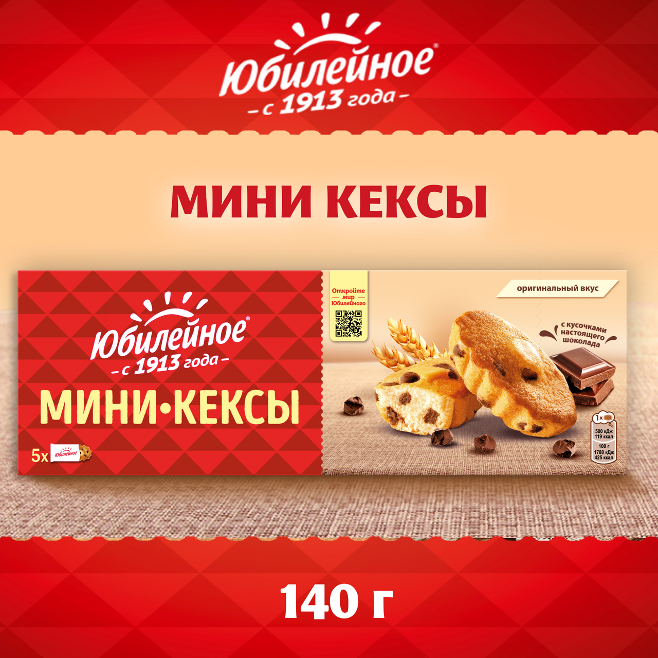 Мини-кексы Юбилейное кусочками молочного шоколада (28г x 5шт), 140г