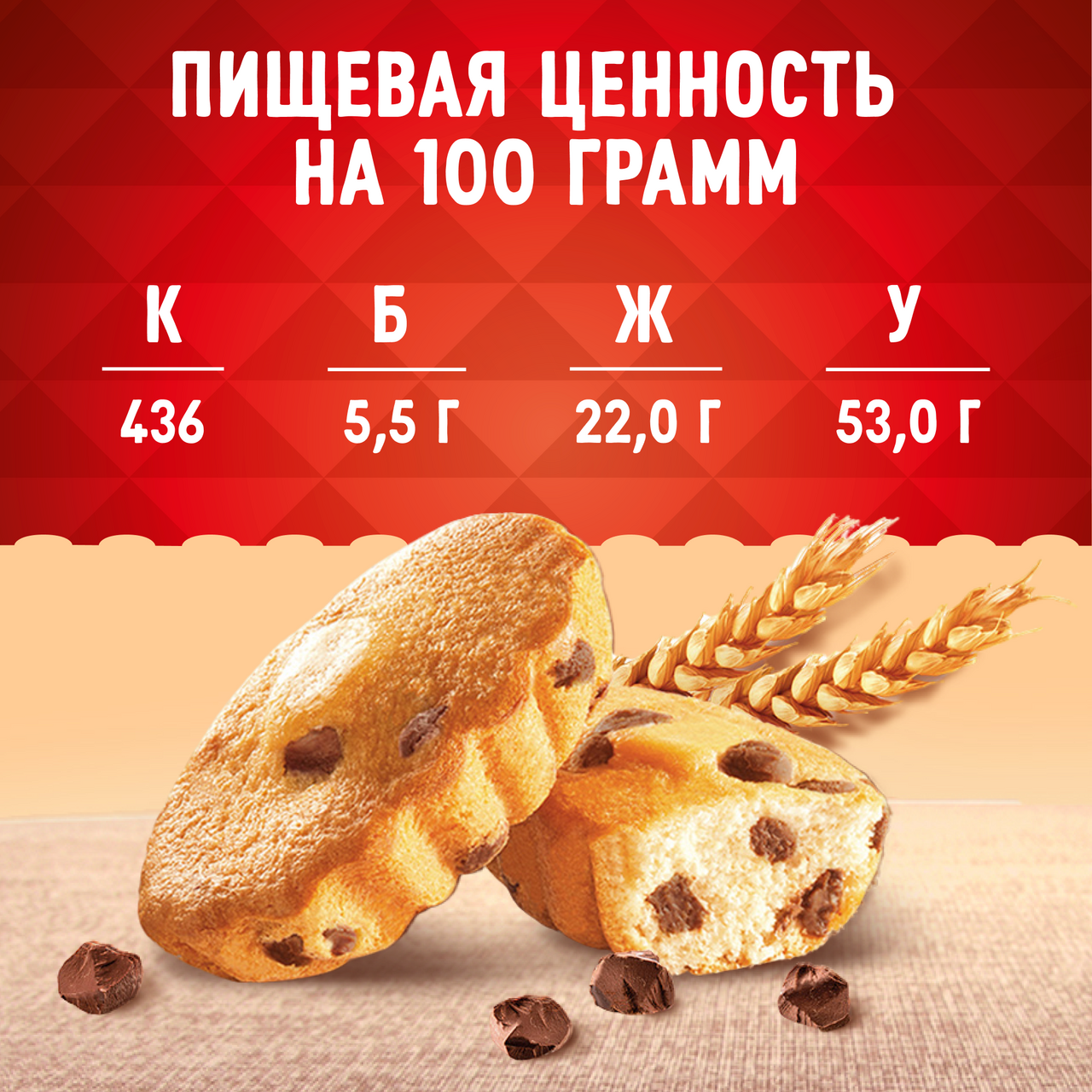 Участвует в конкурсе: Выиграйте кофемашину на сладкое! Совершите покупку товаров-участников на сумму от 1500₽ с 23 октября 2025г. по 14 января 2026г. и получите шанс выиграть кофемашину или другие сладкие призы! Чем больше покупок - тем больше шансов на победу! Подробнее об акции - https://cdn.metro-cc.ru/ru/mndlz_2025.pdf. Пять бисквитных мини-кексов с кусочками настоящего молочного шоколада. Кексы станут отличным сладким дополнением к любому чаепитию.