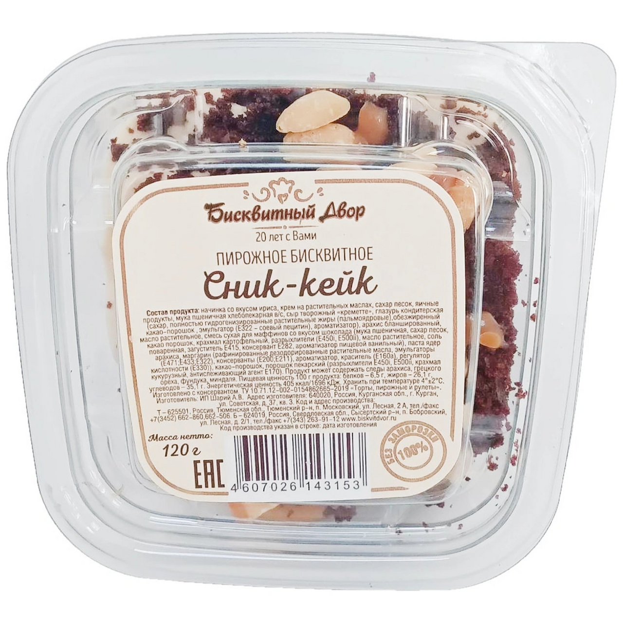 Пирожное Бисквитный двор Сник-кейк, 120г