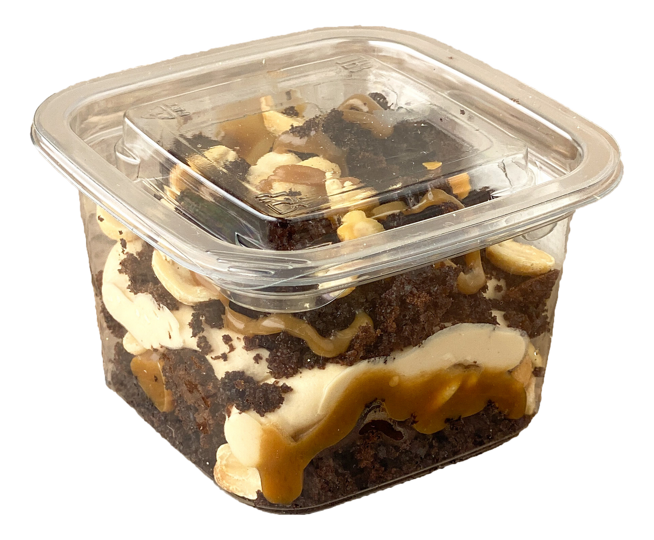 Десерт, созданный по мотивам популярного во всем мире шоколадного батончика Сникерс, с шоколадным бисквитом, карамелью, арахисом и сливочно-арахисовым кремом.