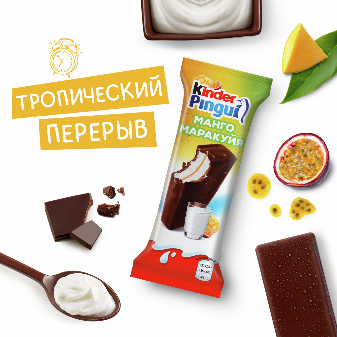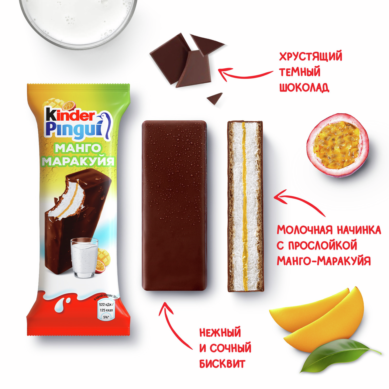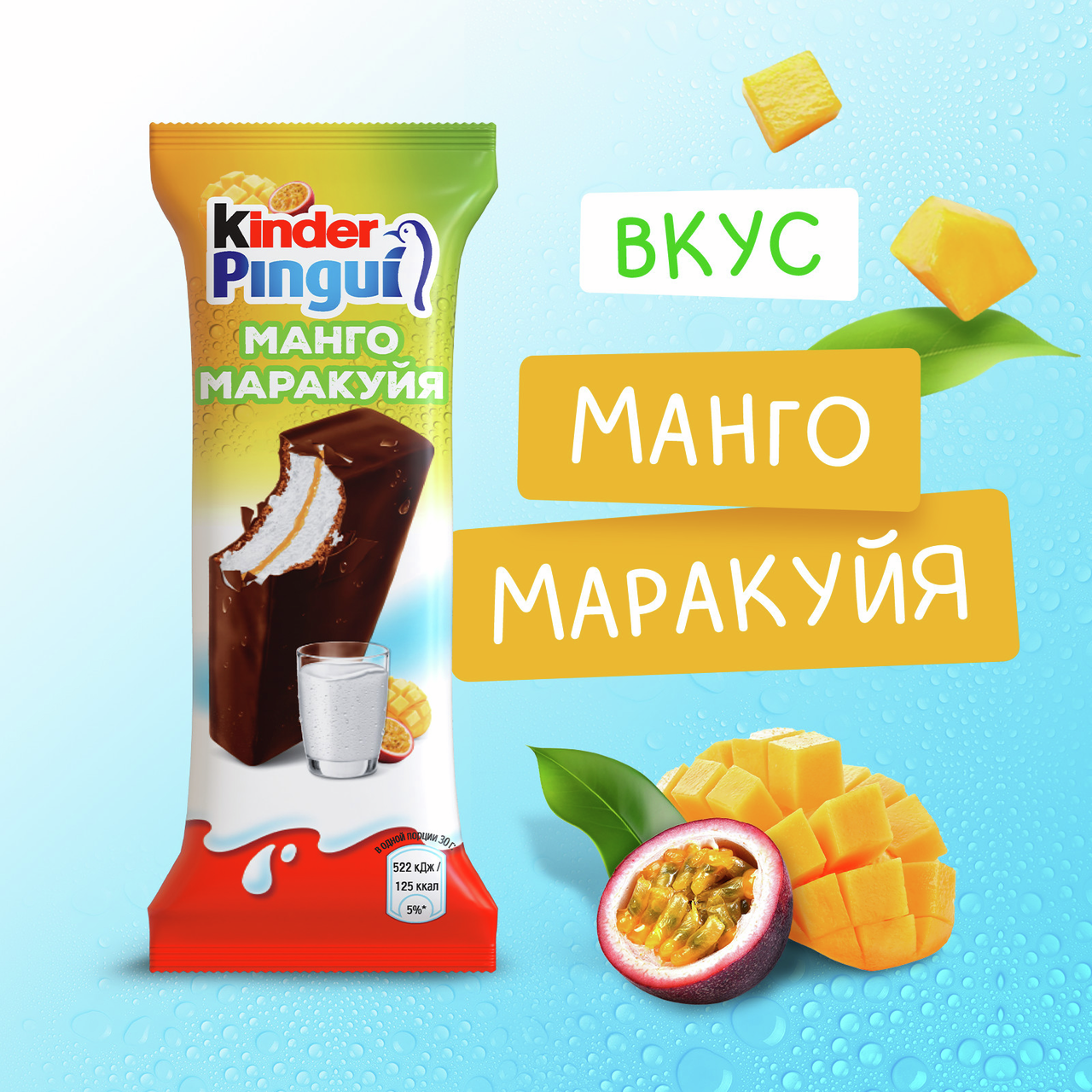 Kinder Pingui Манго Маракуйя - это сочный бисквит с хрустящим шоколадом и молочной начинкой с прослойкой Манго-Маракуйя.Kinder Pingui прекрасно подойдет для легкого перекуса в течение дня. Как и все молочные продукты, хранить Kinder Pingui нужно только в холодильнике. Не содержит красителей и консервантов. Порадуйте себя и своих детей вкусным перерывом с Kinder Pingui. Не содержит красителей и консервантов.