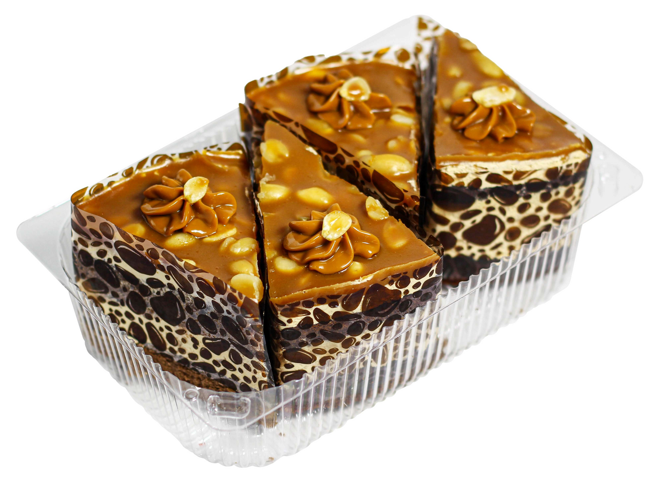 Шоколадный бисквит, сливки, арахис, мягкая карамель. Прекрасно подойдет в качестве десерта к чаю и кофе.