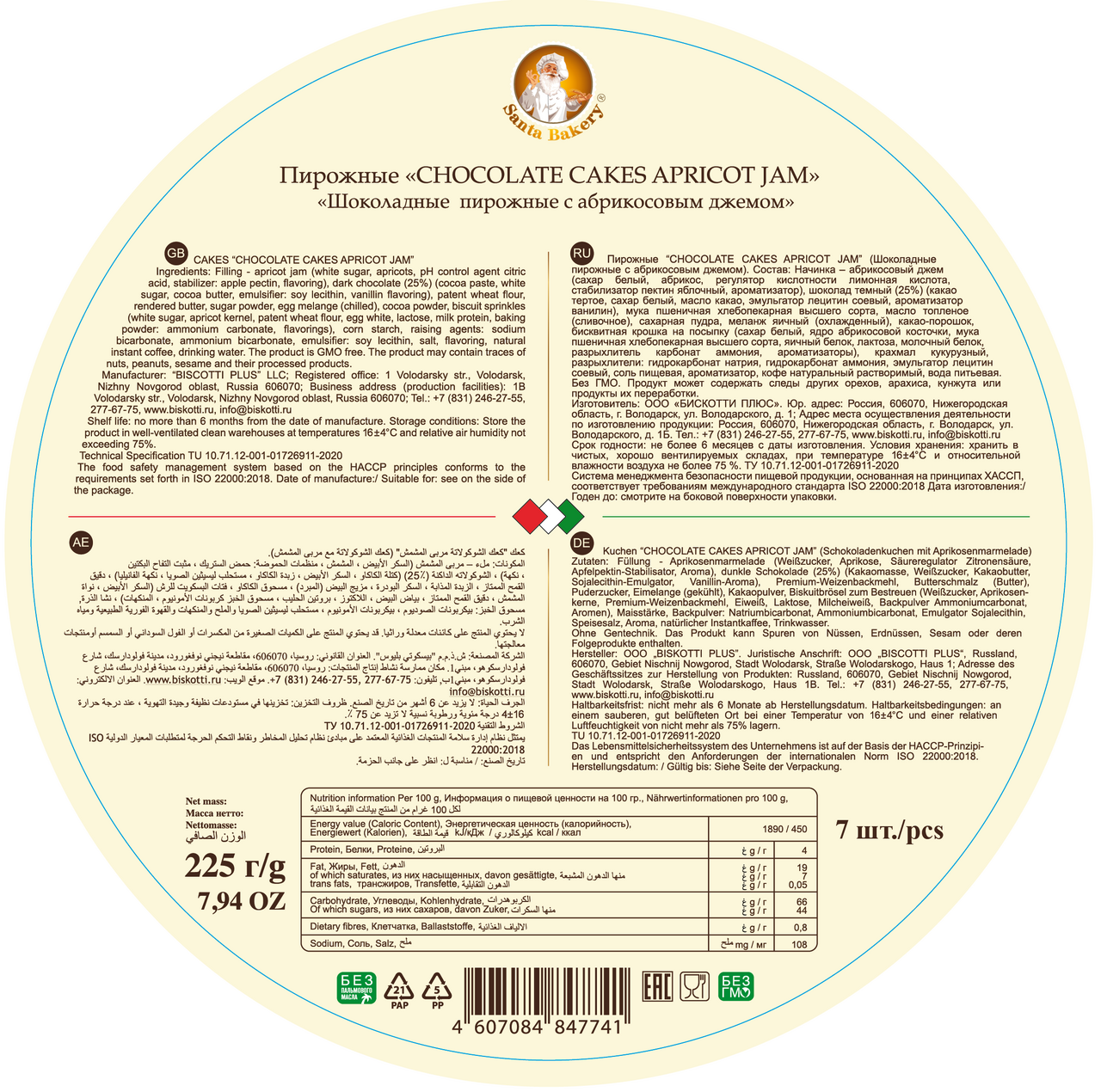 Пирожные Santa Bakery шоколадные с абрикосовым джемом, 225г