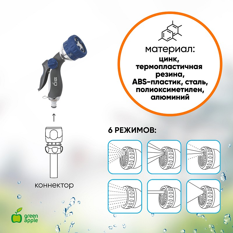 Пистолет-распылитель Green Apple 6 режимов, 25см