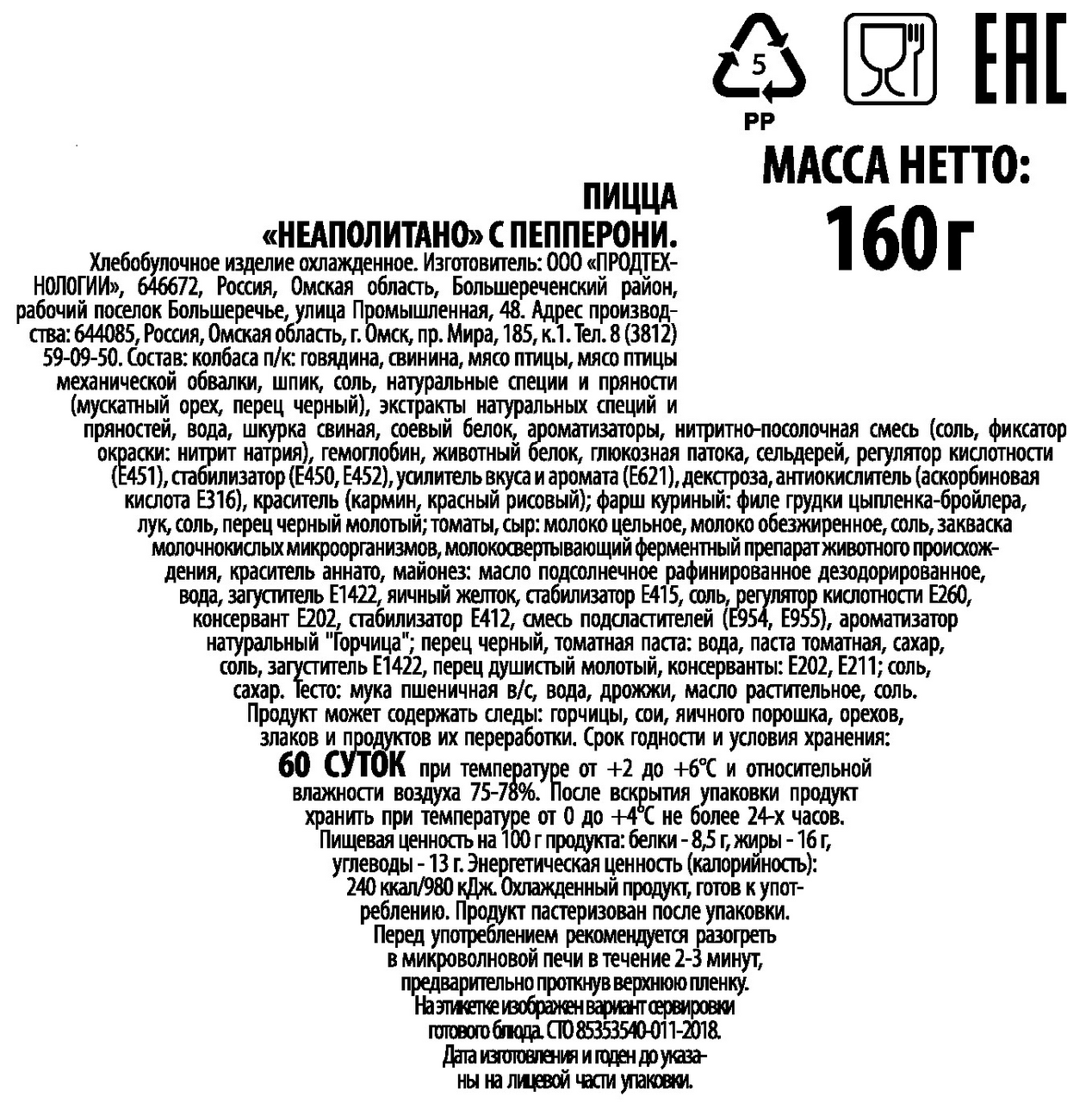 Пицца Неаполитано Холодушка с пепперони, 160г