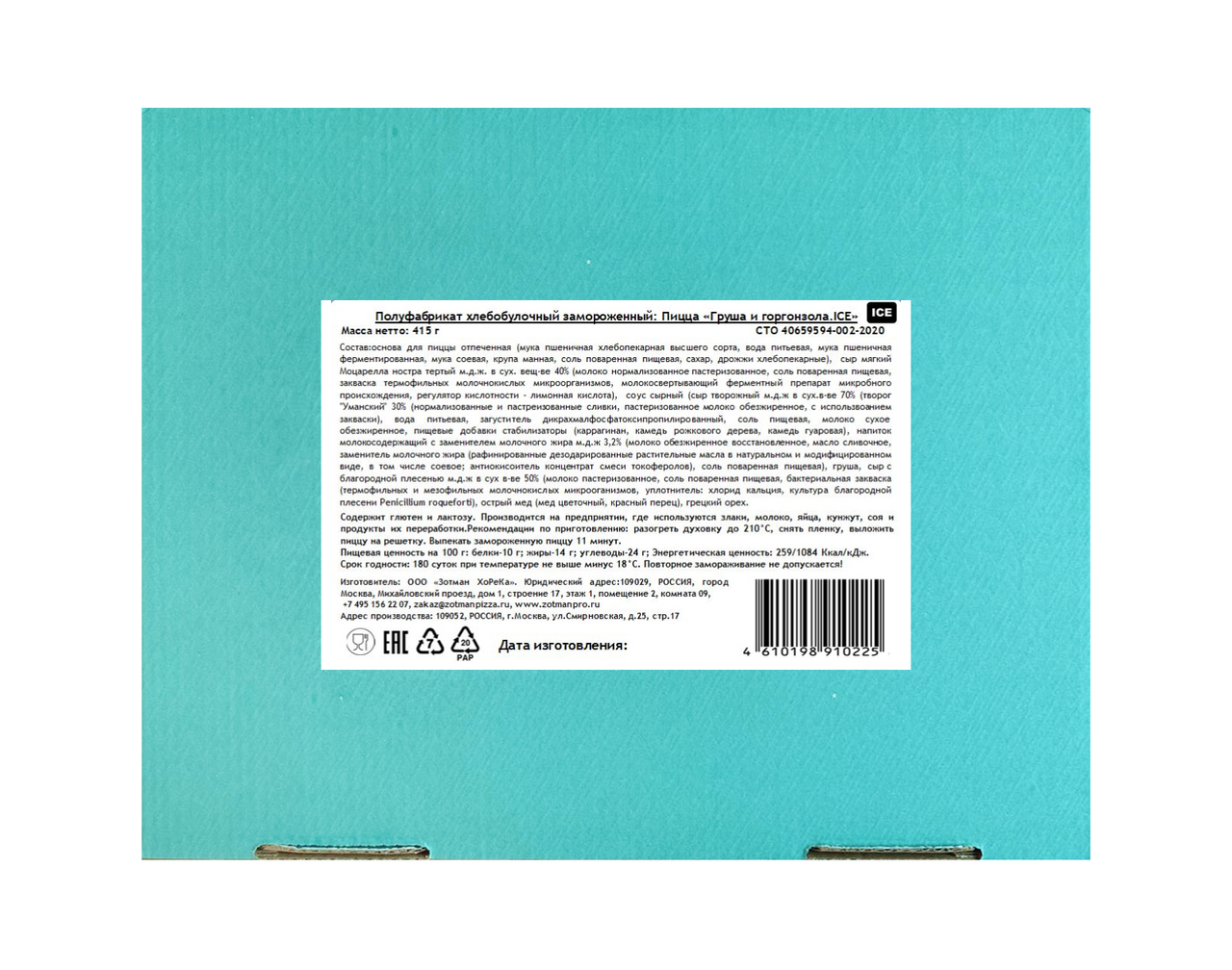 Пицца Zotman Груша и горгонзола замороженная, 415г