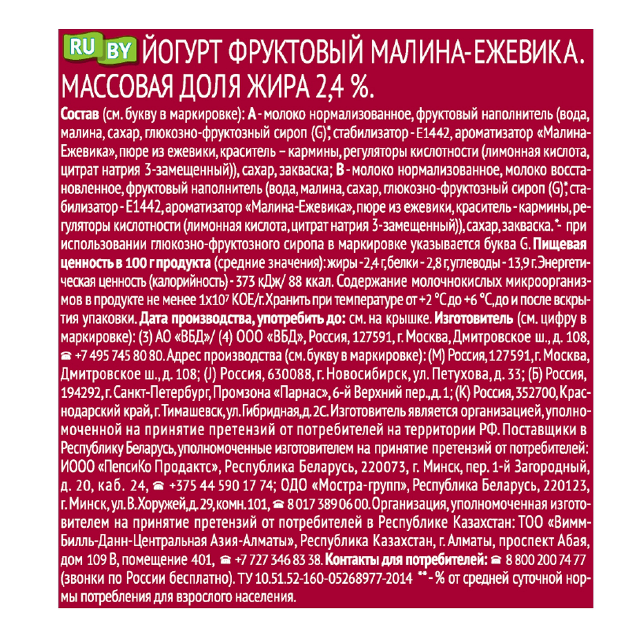 Йогурт Чудо со вкусом малины ежевики 2.4% 270 г