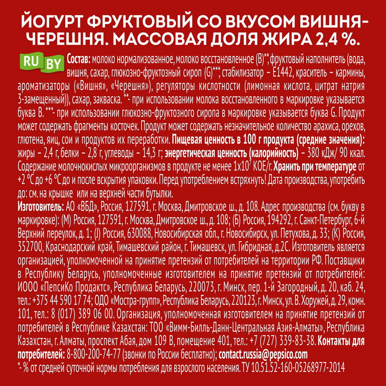 - Жирность, % 2.4